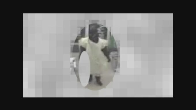 2つ目の「3秒」にはやや斜めの角度から“犯人”が歩いてくる様子がわかります。ゆっくり歩いているようです。
