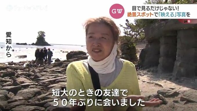 愛知から来た女性「(Q.どうしてこちらに?)短大のときの友達で、50年ぶりに会いました。(50年ぶりの再会ですか?すごい!素敵!)。(南砺市の友人)そして、このいい天気にきれいな景色を紹介できてよかったです。感動してます」