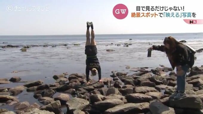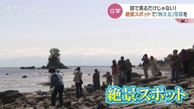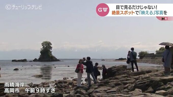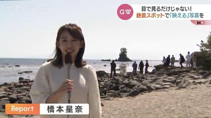 橋本星奈アナウンサー:「午前9時の雨晴海岸です。GW真っ只中ということもあり、すでに多くの観光客が訪れています」