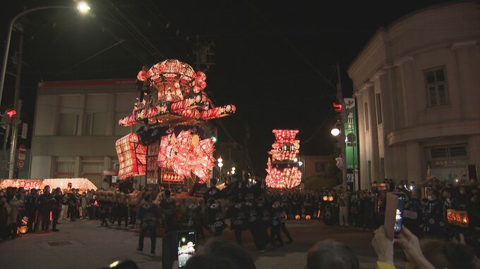 2日夜、富山県南砺市福野地域の伝統行事「福野夜高祭」が4年ぶりにコロナ前の形で開催され町は熱気に包まれました。行燈を壊しあう「引き合い」では激しさのあまり一時中断のトラブルもありましたがその勇ましさは健在でした。