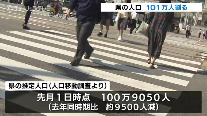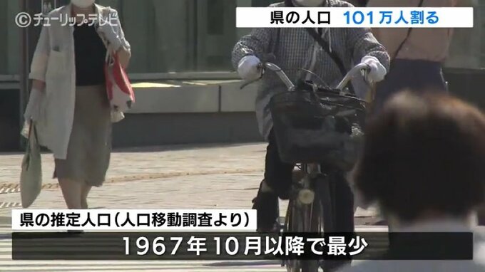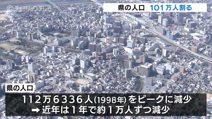 県の人口は1998年の112万6336人をピークに減少が続いていて、近年は、1年でおよそ1万人ずつ減少し、100万人割れが迫っています。