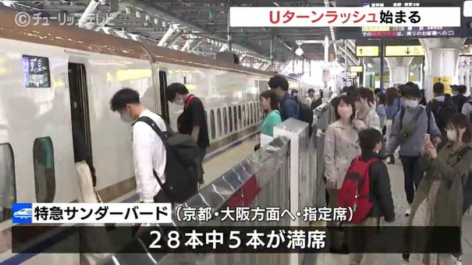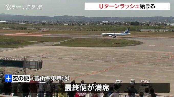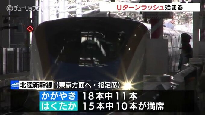 空の便も富山発羽田行きの最終便が満席となっています。このUターンの混雑はJR、空の便ともにあさってまで続く見込みです。