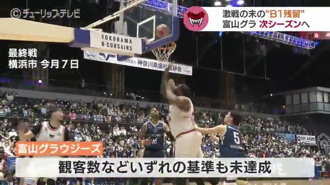 富山グラウジーズは今シーズン15勝45敗中地区7位で、全日程を終了。Bリーグは、2026年からクラブの経営力などを指標とする新リーグに移行しますが、グラウジーズは観客数などの参入基準を満たしておらず高堂社長は、新リーグ参入に向け改めて決意を新たにしました。