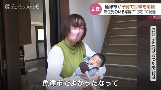 おむつは魚津市に住む今年度生まれた新生児がいる世帯に2回まで配達されます。