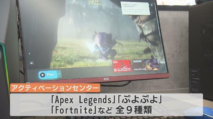 パソコンは全25台。「エーペックス」や「ぷよぷよ」「フォートナイト」などeスポーツ界でも人気のゲームが全9種類、楽しめます。