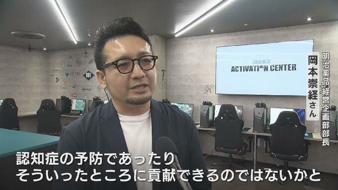 明治薬品 経営企画部部長 岡本崇経さん:「医薬品や健康食品とはまた別のアプローチで、eスポーツにより皆さんの「脳を活性化」していただくことによって、認知症の予防であったりそういったところに貢献できるのではないかと」