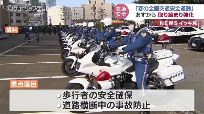 11日から始まる「春の全国交通安全運動」にあわせ、富山県警も交通ルールの取り締まりを強化します。