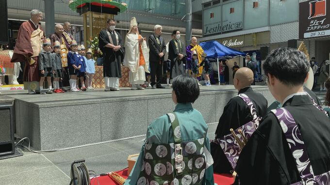 富山市総曲輪のグランドプラザで開かれた11日の花まつりは、富山市仏教連合会と富山市花祭奉賛会が主催したもので今年で70回目となります。