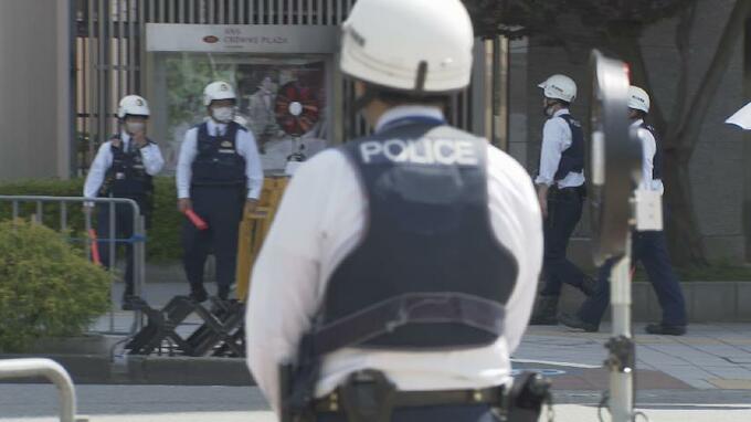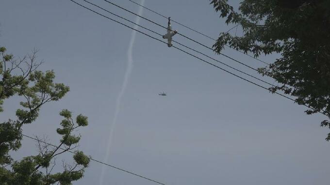 視察前後の2時間以上警察のヘリが巡回し、厳戒態勢がとられました。
