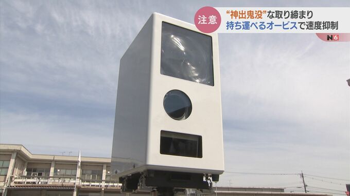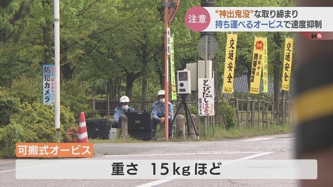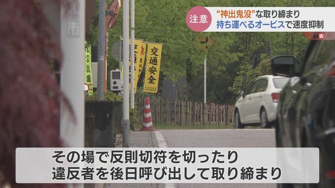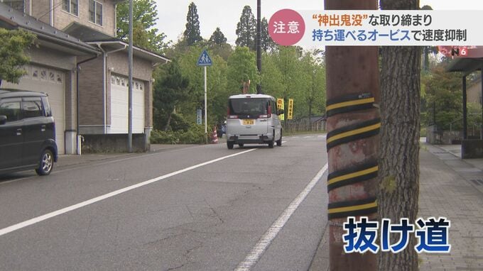 記者:「この道路は小中学生の通学路として使われていますが、交通量が多く住民からは危険だという指摘が相次いでいます。そこで警察による可搬式オービスを使った速度取り締まりが行われています」