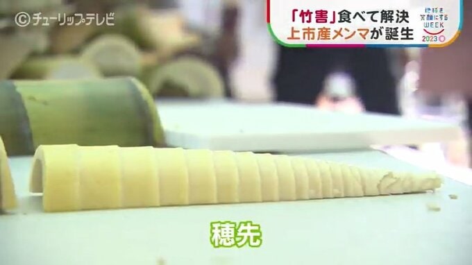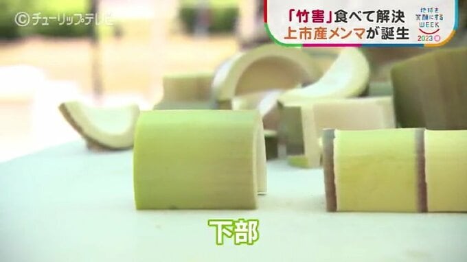 集められた幼竹の余分な部分を切り落とし、皮をむけばメンマ作りの下準備は完了。むきたての幼竹に触れてみると…。