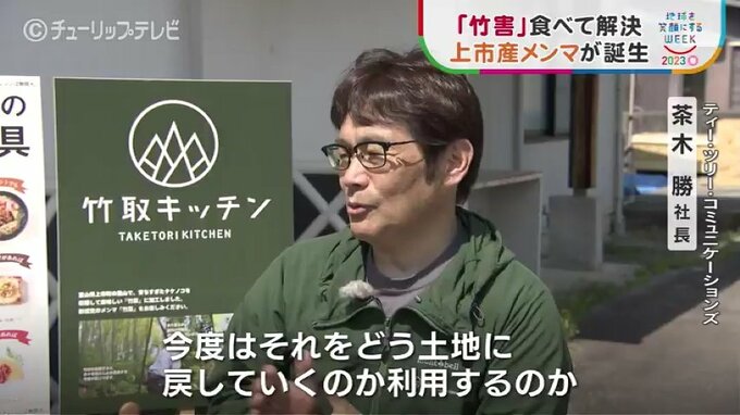 茶木 勝 社長:「取り損ねてしまったタケノコ。これをみんなが使うことによって、放置竹林になる予防ができる。みんなで食べて、みんなで持続可能な竹林整備をしていこうということです」