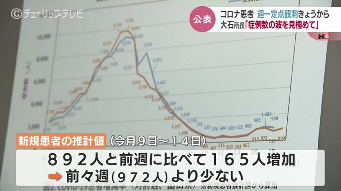 先週の新規患者の推計値は892人で、前の週に比べて165人増加していますが前々週よりは少なくなっています。そのため、大石所長は大型連休明けの感染拡大は見られないとし、富山県内は比較的落ち着いているとの見解を示しています。