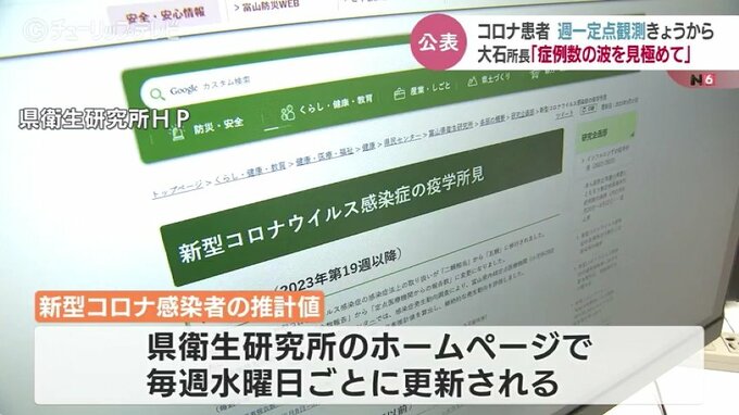 新型コロナの感染者数の推計値は富山県衛生研究所のホームページで、毎週水曜日ごとに更新されることになります。
