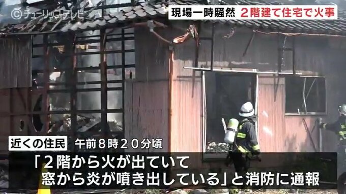 消防車12台が出動し火は、およそ2時間後に消し止められました。警察によりますと、この家には中村さんとその親族の2人が住んでいて、60代の親族の男性が腕にやけどを負い軽傷です。
