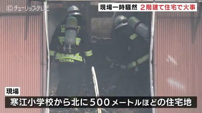 現場は、富山市の寒江小学校から北に500メートルほどの住宅地で一時騒然としました。今後、警察と消防が実況見分を行い、出火原因などを調べます。