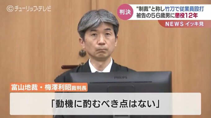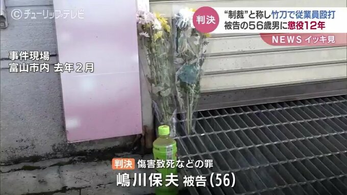 従業員に竹刀で殴るなどの暴行を加え、死亡させた富山市の元会社員、嶋川保夫被告(56)に懲役12年の実刑判決です。