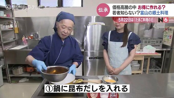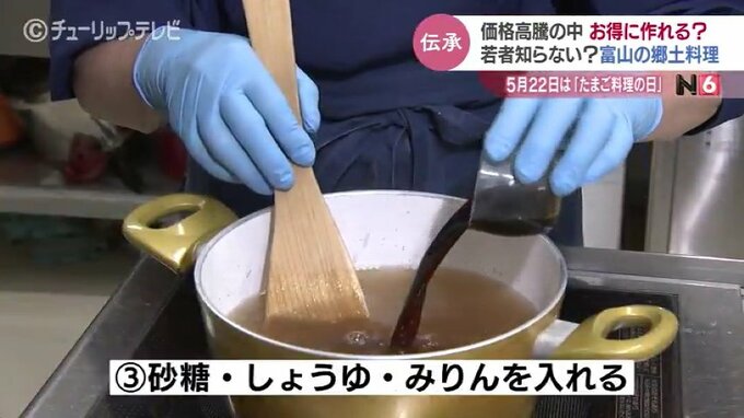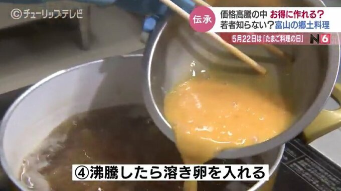 「沸々してきたら、卵を入れてください。全体にまんべんなく入れてもらえればOKです」