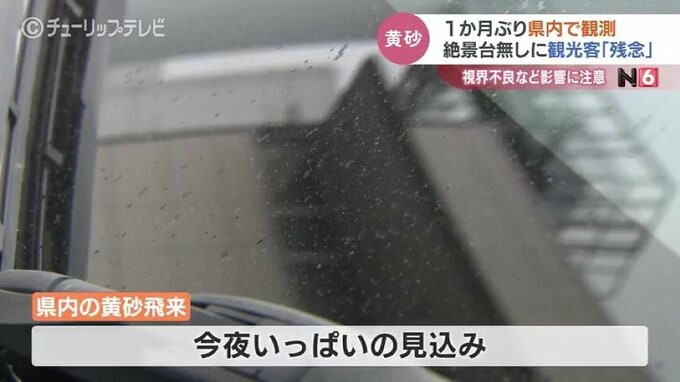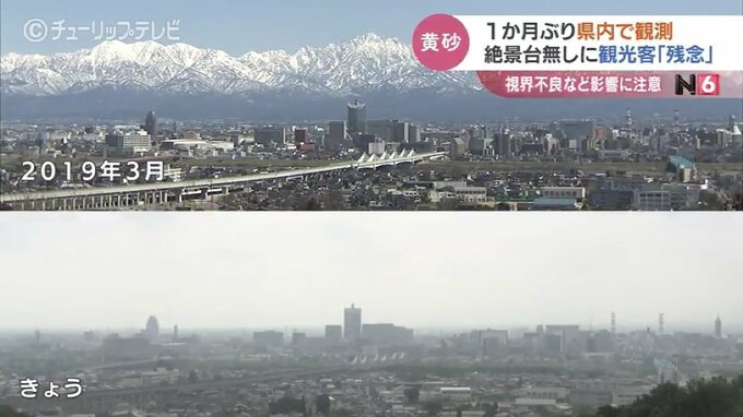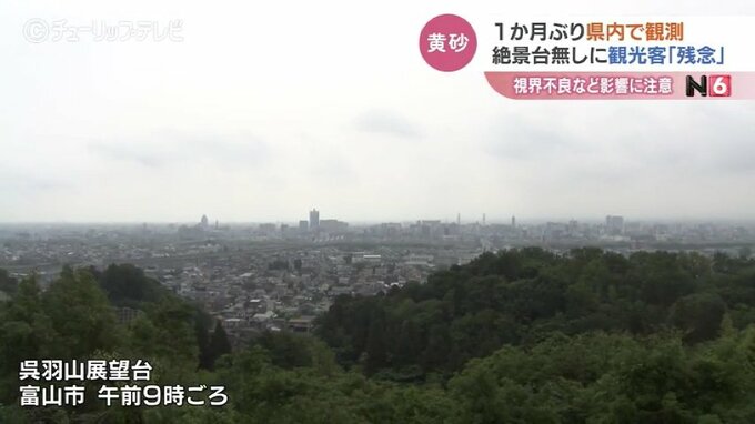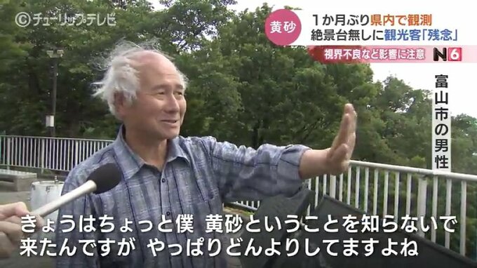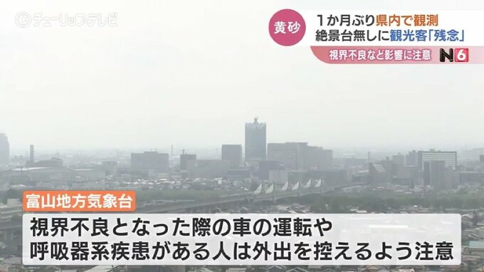 富山市の男性:「他県の車も多いんで、立山連峰がすっきり見えたにこしたことはないんですけど、きょうはちょっと僕、黄砂ということを知らないで来たんですが、やっぱりどんよりしてますよね」