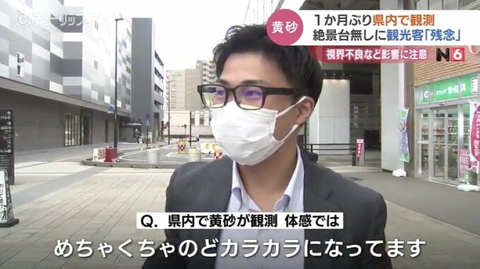 男性:「(Q.県内で黄砂が観測されてるんですけど体感で感じるところありますか)めちゃくちゃのどカラカラになってます。(Q.マスクはコロナ対策でしているわけではない)ないです。(Q.黄砂対策)そうです」