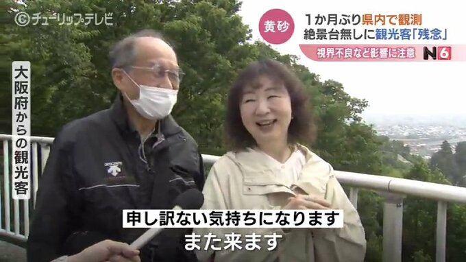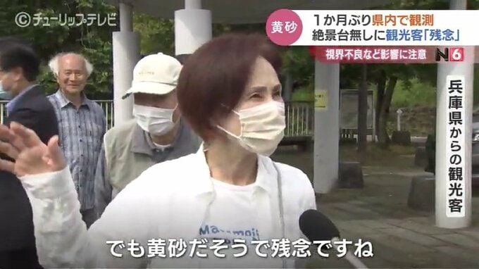 県内の絶景スポットを巡るツアーで関西からやってきた観光客も、あいにくの黄砂に肩を落としていました。