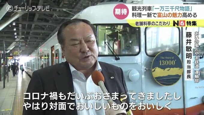 あいの風とやま鉄道運輸部 藤井敏明担当部長:「満足度は120%だと思います。コロナ禍もだいぶおさまってきましたしやはり対面でおいしいものをおいしく、楽しい会話でいい富山県の山々そして海を見ながら楽しんでもらえたらと思います」