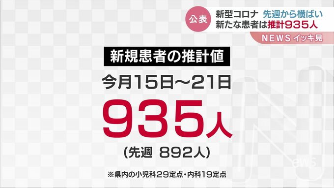 これに基づく新たな患者の推計値は935人で前の週から43人増えています。