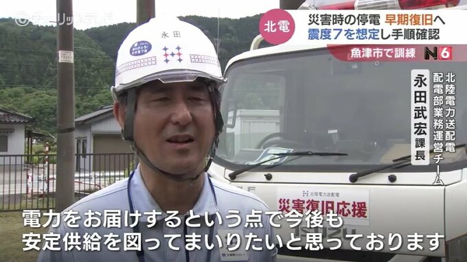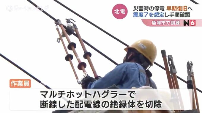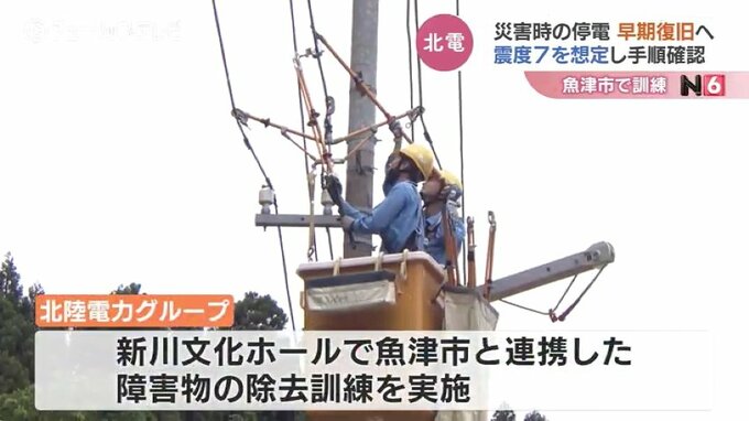 5月5日、震度6強の地震に見舞われた石川県珠洲市では300戸以上が停電しました。こうした災害時の停電から早期復旧を図る訓練が25日、富山県魚津市で行われ、北陸電力グループが復旧作業の手順などを確認しました。