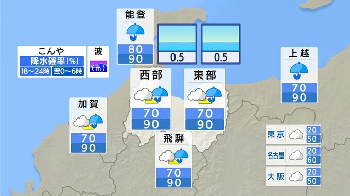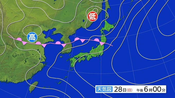 富山地方気象台によりますと、本州付近は華中から朝鮮半島を通って日本の東にのびる前線が北陸地方を南下する見込みです。前線に向かって暖かく湿った空気が流れ込み、富山県は大気の状態が不安定となる見込みです。
