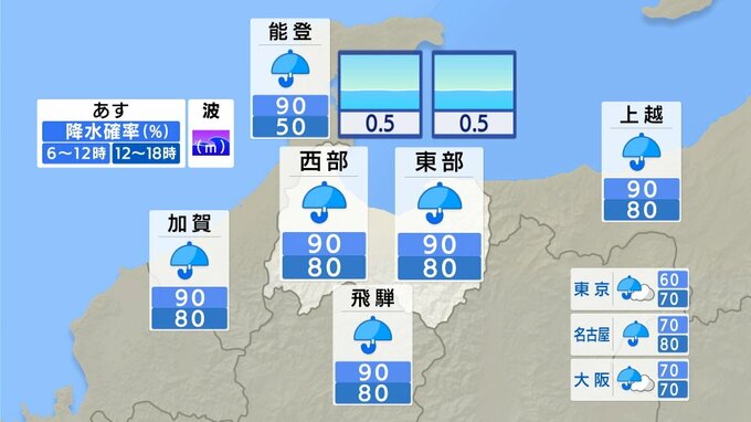 また、29日に予想される雨の量は、富山県東部で40ミリ、西部で40ミリです。