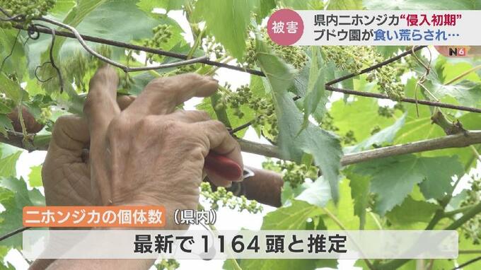 ブドウ園経営 古川仁一さん:「シカは5,6年前から見ていた。私自身もこの近くで…。たくさんいる、周りにはもう。嫌やけどどうなる…」