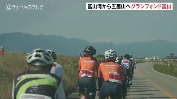 富山県内で最大級の自転車イベント、グランフォンド富山が4日開催され、青空のもとおよそ913人のサイクリストが県内を駆け抜けました。