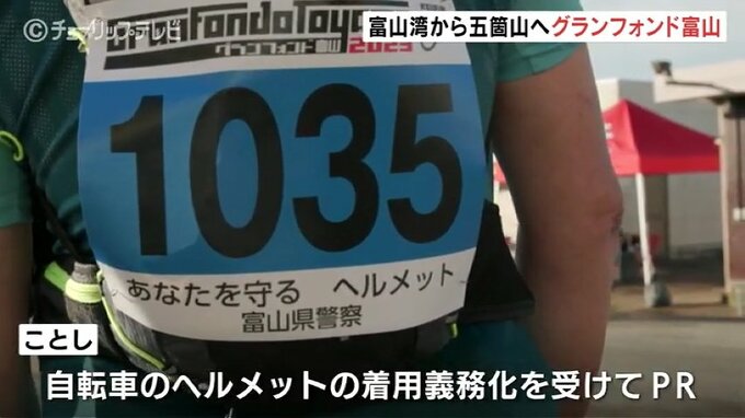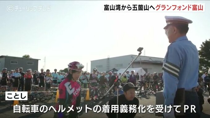 グランフォンド富山は、富山県内最大級の自転車イベントで、ことしは4月から自転車のヘルメット着用が努力義務となったことを受けて、県警と協力してPRしています。