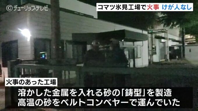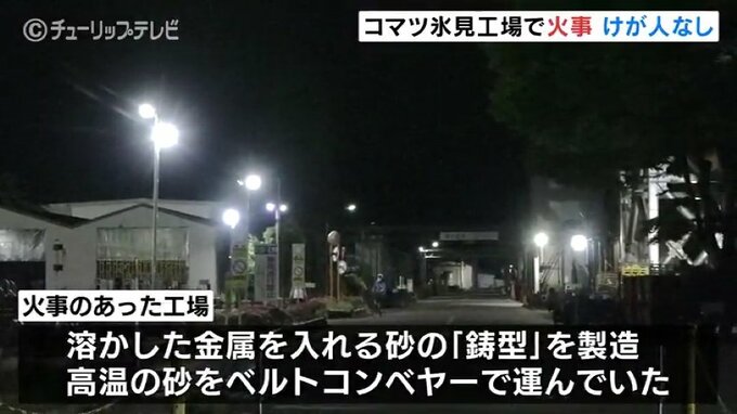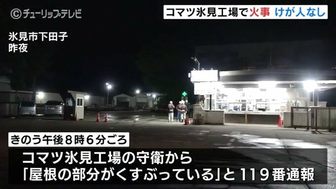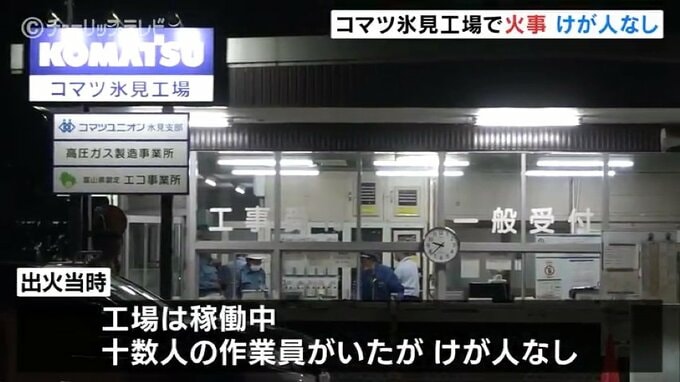 6日夜、富山県氷見市にあるコマツ氷見工場で火事がありました。工場は稼働中でしたが、けが人はいませんでした。