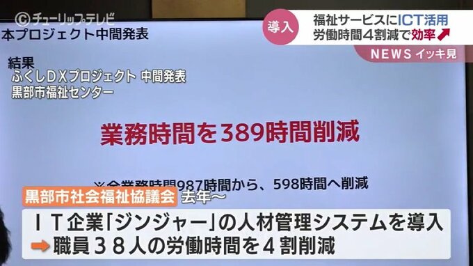 富山県の黒部市社会福祉協議会は7日、東京のIT企業ジンジャーの人材管理システムを導入した結果職員38人の労働時間を4割削減したことを発表しました。