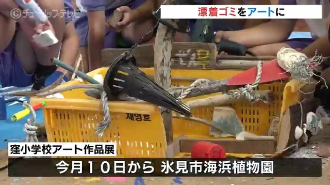 富山湾の海岸に流れ着いたいわゆる「漂着ゴミ」を使って、氷見市の子どもたちが創造力豊かな作品を制作しました。