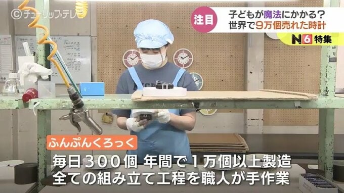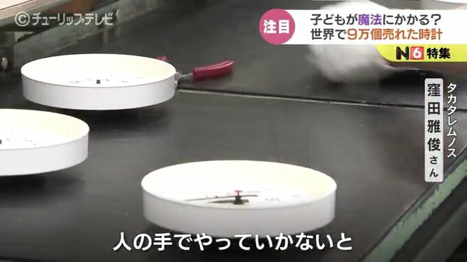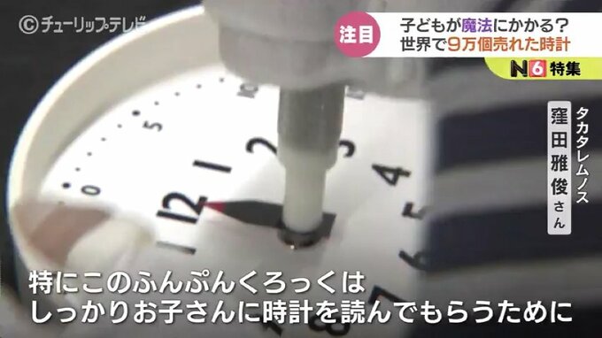 タカタレムノス 窪田雅俊さん:「まっすぐささないと、時間がずれてしまうので。特にこのふんぷんクロックはしっかりお子さんに時計を読んでもらうために秒針の位置までもしっかり(正しい位置に)くるように、人の手でやっていかないと」