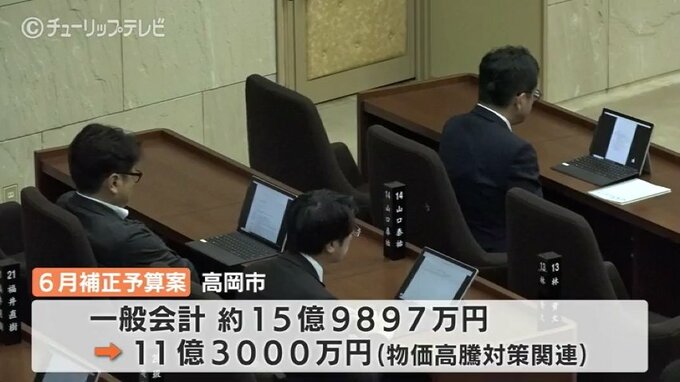 高岡市の6月補正予算案は、一般会計で15億9897万円でこのうち7割にあたる11億3000万円が物価高騰対策関連となりました。