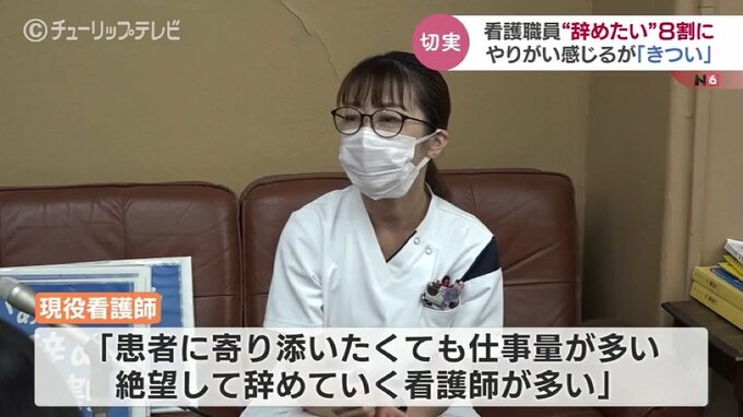 会見に出席した富山市内の看護師は、患者に寄り添いたくても仕事量が多くて絶望し辞めていく看護師が多いと訴えました。