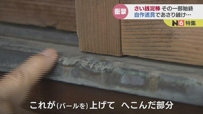 奥田神社 二宮啓宮司:「これですね、ここバールでクッと。これが(バールを)上げてへこんだ部分。ヒヤヒヤもんですよこれ見たときは」