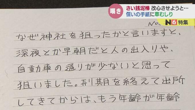 被害額は、立証できたのが2000円。実際はこれより上回っているとみられますが、確認することはできませんでした。犯人は、ほかの神社でもさい銭泥棒を繰り返していたといいます。舩木さんは、犯人に反省を促す返事を書きました。