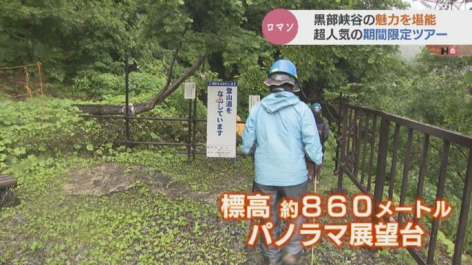 N6特集 2分間で地中200メートル上昇するエレベータ!その先をゆく “黒部峡谷パノラマ展望ツアー” 厳しい自然に挑んだ電源開発を体感 2023年6月16日(金) 22:50 国内 話題・グルメ 最後に目指すのは絶景が待つ、標高およそ860メートルのパノラマ展望台。細く険しい道のりを息を切らしながら15分歩きます。 案内:「こちらが展望台です」