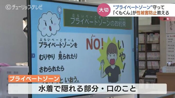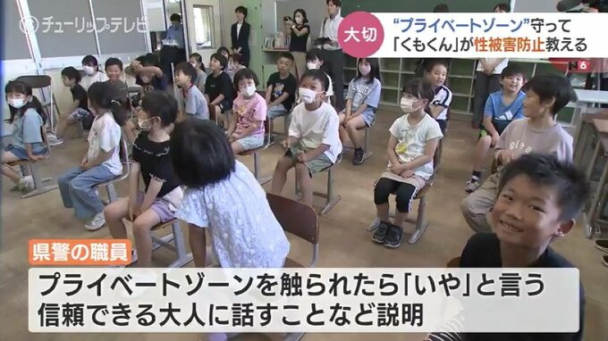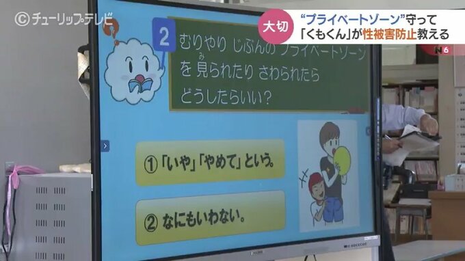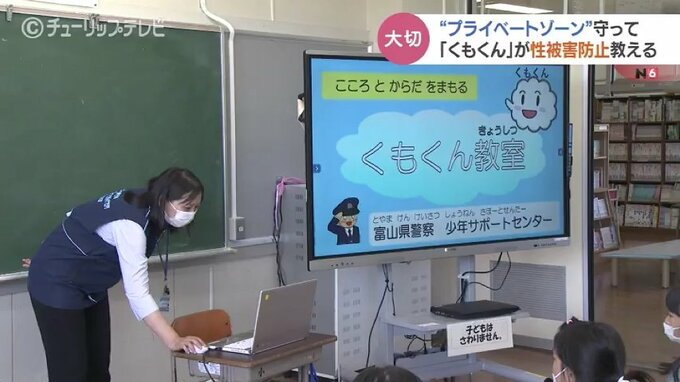 富山県氷見市の十二町小学校1年生と2年生の児童たちに向けて行われたのは、性被害について描かれた絵本のキャラクター「くもくん」から学ぶ「くもくん教室」です。
