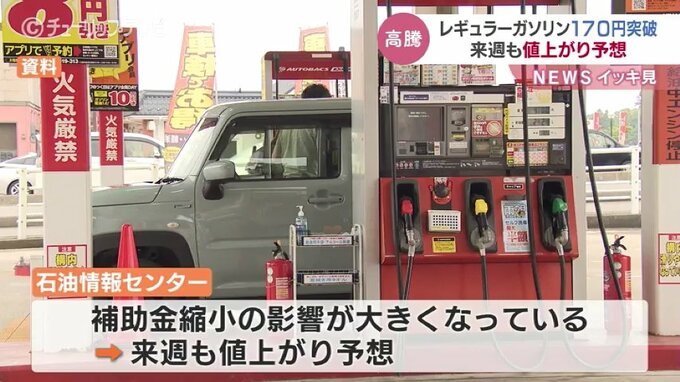 石油情報センターによりますとガソリン補助金が段階的に縮小されている影響が徐々に大きくなっているといい来週も引き続き値上がりが予想されるということです。