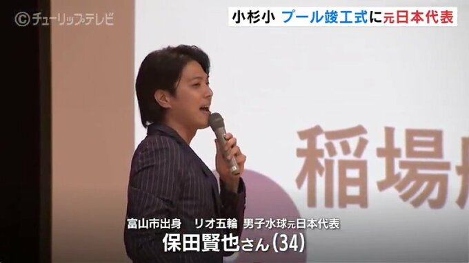 竣工式に招かれたのは、富山市出身でリオデジャネイロオリンピック男子水球・元日本代表の保田賢也(やすだ・けんや)さん。