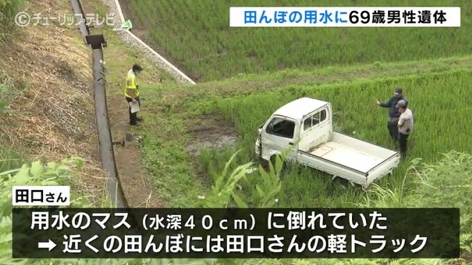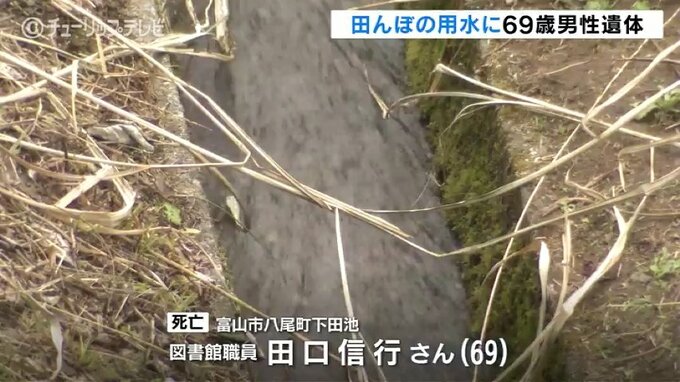 23日午後9時10分ごろ、富山市八尾町下田池の田んぼの用水で、近くに住む図書館職員、田口信行(たぐち・のぶゆき)さん(69)が、うつ伏せに倒れているのを田口さんの息子が見つけ、消防に通報、その場で死亡が確認されました。