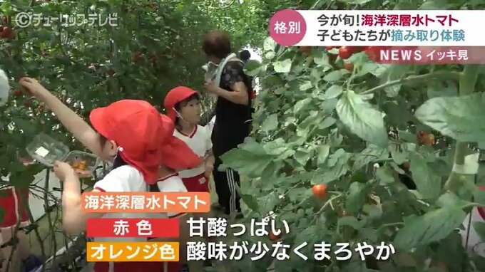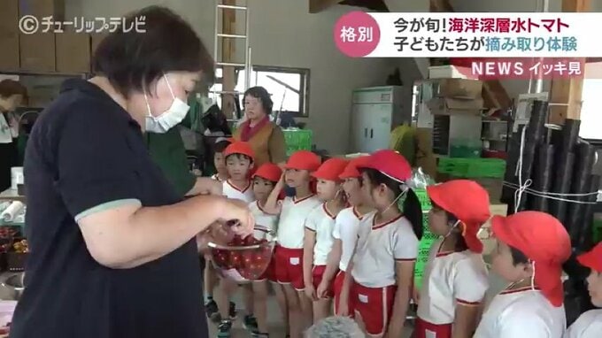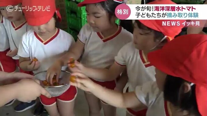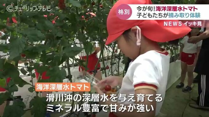 富山県の滑川市がブランド化を進める「海洋深層水トマト」。26日は地元の早月加積認定こども園の年長組が摘み取りに挑戦しました。