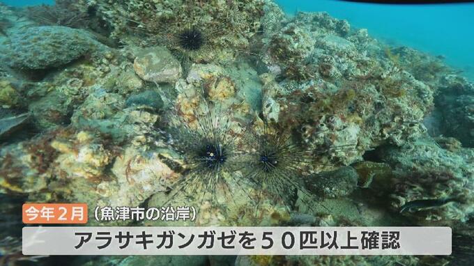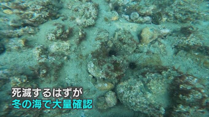 「まだ小型の個体ですね、昨年生まれの1歳になる個体だと思います。ガンガゼの仲間は夜のほうが活発に活動しますので、まだまだ見えないところにたくさんいる可能性は考えられますね」「今回、個体数は少なかったんですけど、越冬が確認されたということで、今後富山の海でもこのガンガゼの仲間の数が増えることが予想されます」