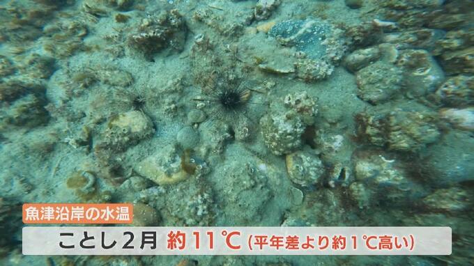 こうした変化の要因は海水温の上昇です。ガンガゼ類が大量に確認されたことし2月の魚津沿岸の水温はおよそ11℃で平年より1℃ほど高くなりました。