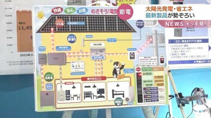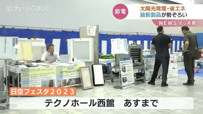 富山市のテクノホールでは最新の太陽光発電システムや省エネ家電を展示するイベントが開かれています。